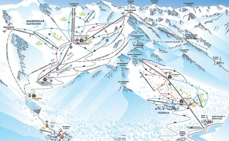 Serfaus - Fiss - Ladis - 16 km, skibus - 400 m, skiareál ledovec