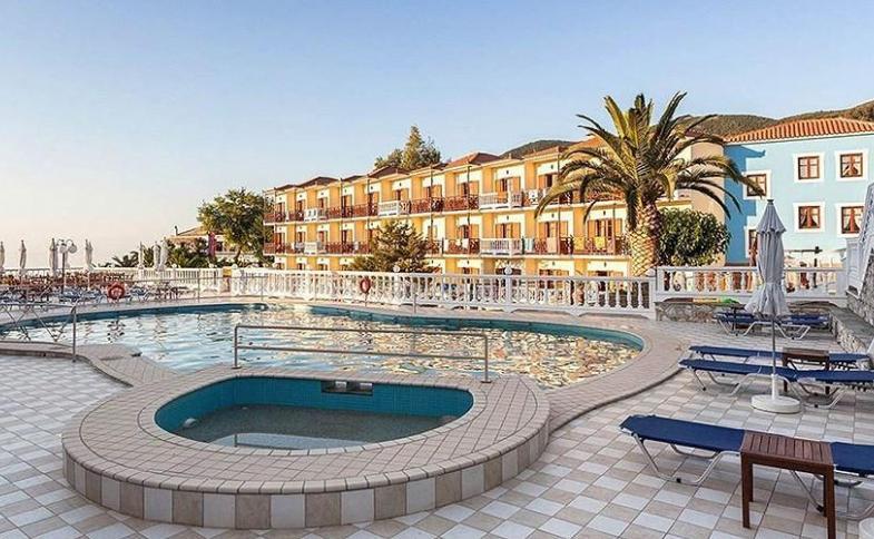 | Rozlehlý areál hotelu skýtá svým hostům hezký výhled na hlavní město i přístav. V přední části se dotýká pobřežní komunikace táhnoucí se do městečka Skopelos nebo na druhou stranu. Areál je tvořen hlavní budovou a vnějším areálem se sladkovodním bazénem vsazeným do velké udržované zahrady. Lehátka a slunečníky jsou zde hostům k dispozici zdarma. Uvítá Vás recepce, k dispozici budete mít společné prostory s knihovnou, snídaňovou místnost ,,Olive Hall,, (během dne slouží i jako snack bar), venkovní část navíc nabízí dětské hřiště a velké soukromé parkoviště (pro hosty zdarma). Na okolních plážích najdete veškerý servis i středisko vodních sportů. |
