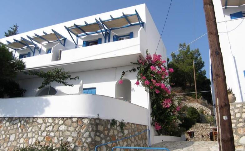 | Půvabná vilka je postavena v ostrovním stylu a její modrobílé barvy dokonale zapadají do místní architektury. Standardně vybavená studia jsou v přízemí a patře. Z balkónů, popřípadě terasy je výhled na moře nebo na zalesněný svah. |
