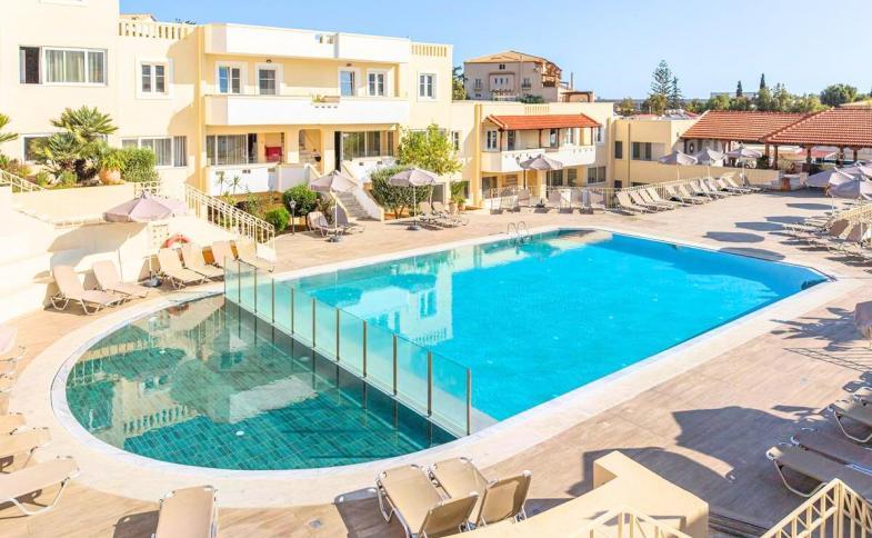 Skromný, klidný rodinný hotel, který byl podle očekávání - i když ne podle uváděných hvězdiček ! Co zklamalo byla slovenská delegátka, která nám již při jízdě k hotelu řekla, že jelikož je hotel tak daleko, tak tam za námi nepříjde a ani uvítací schůzka se nebude konat, ale kdybychom měli nějaké dotazy nebo problémy, tak jí můžeme zavolat na jedí řecké číslo na mobilu. Taky to, že se nekonali vůbec žádné zájezdy a jen jsme byli odkázáni si buď zajet do Heraklionu místním autobusem nebo si pronajmout auto nebylo zrovna nejšťastnější. Jen díky tomu, že mluvíme německy a že delegátky jedné německé CK byla na hotelu 3x do týdne jsme nakonc přesto měli velmi hezký výlet.