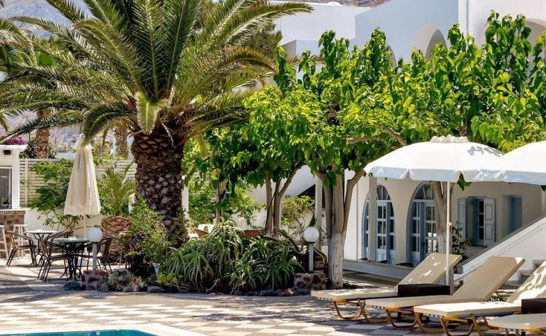 Komorní hotel v kykladském stylu se nachází na klidném místě, ale zároveň v blízkosti pláže a veškeré zábavy typické pro letovisko. Vřele doporučujeme jeho zrekonstruované pokoje.