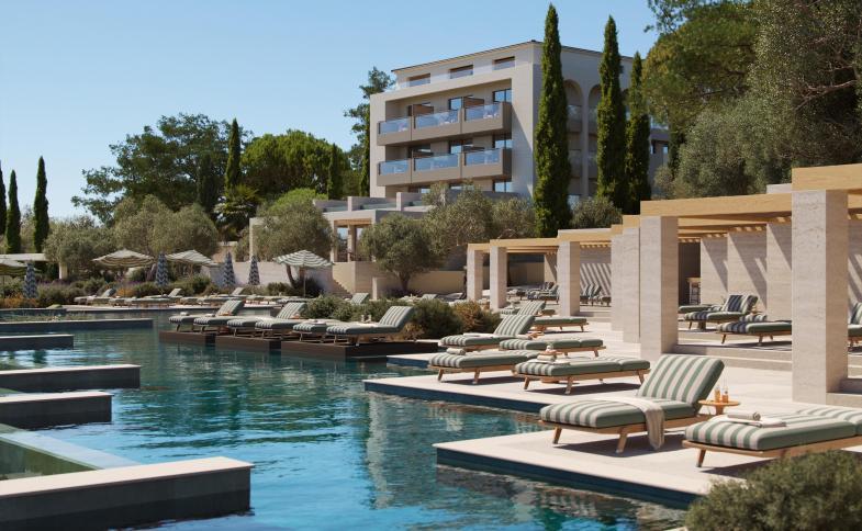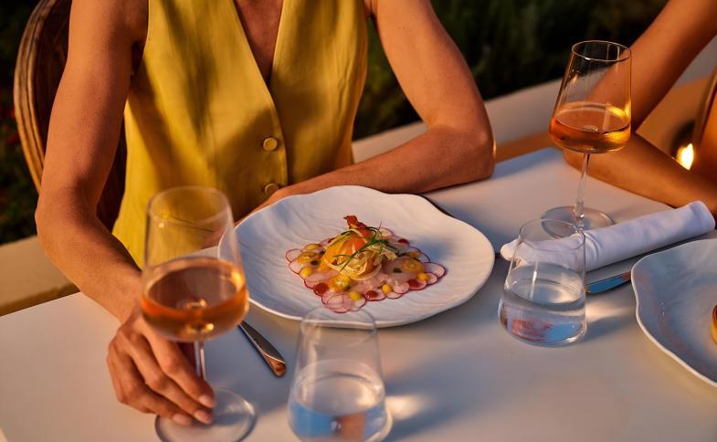 Celkem 76 pokojů a suit, několik pokojů se soukromými bazény, uvnitř několik restaurací, ála carte restaurace, lobby bar, recepce, směrna, prádelna, vnitřní fitness a sauna. Venku infinity bazén, bar u bazénu, lehátka a slunečníky zdarma, food truck u bazénu, soukromá pláž s lehátky a slunečníky, parkoviště.Pokoje
