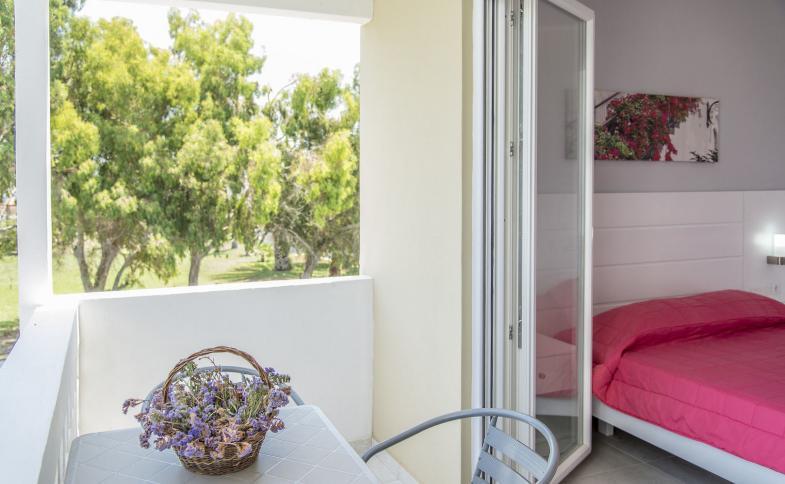 Balkón patří ke standardu ve většině pokojů. Mnoho pokojů má výhled na moře, který vytváří příjemnou atmosféru. Pokoje jsou hezky zařízené, je zde pohodlná rozkládací pohovka. Je možné požádat o přistýlku. V pokojích je kuchyňský kout. Na pokoji je připojení k internetu, telefon a WiFi (zdarma). V koupelnách je sprchový kout. V hotelu jsou pokoje pro rodiny a nekuřácké pokoje.
