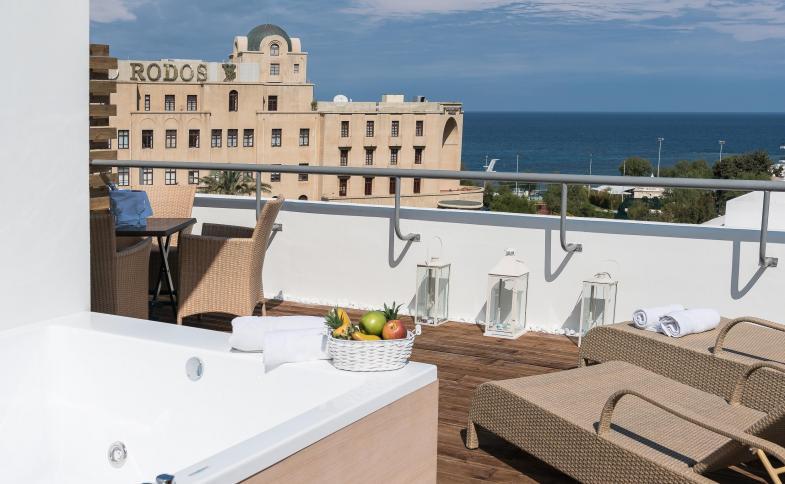 V pokojích je klimatizace, ústřední topení a koupelna. K standardnímu zařízení většiny pokojů patří balkón. Mnoho pokojů má výhled na moře, který vytváří příjemnou atmosféru. Pokoje mají manželskou postel typu king size a rozkládací pohovku. Je možné rezervovat oddělené ložnice. K dispozici jsou i postýlky pro kojence nebo přistýlky. Také je zde sejf a pracovní stůl. Ke standardnímu vybavení patří lednička. Na pokoji je připojení k internetu, telefon, televize, rádio a WiFi (zdarma). V koupelnách je sprchový kout a vana. Také je tu vysoušeč vlasů. V hotelu jsou nekuřácké pokoje.