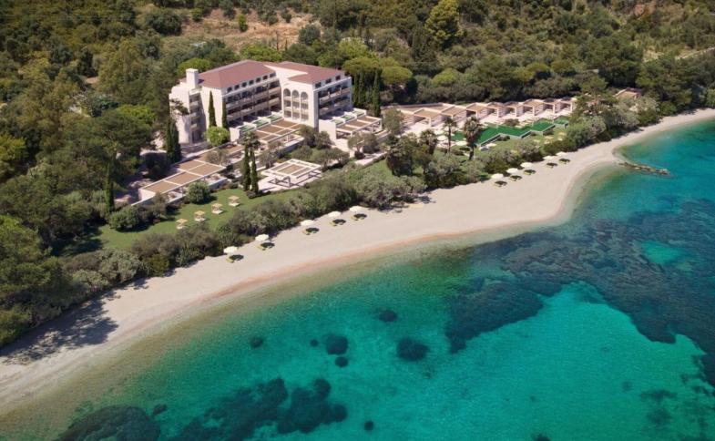 Hotel se nachází přímo na soukromé pláži se zlatým pískem. Plážový servis (lehátka a slunečníky) je k dispozici zdarma. K dispozici je také centrum vodních sportů, kde si můžete za příplatek zapůjčit mimo jiné vybavení pro vodní sporty, kánoe, kajaky a šlapadla. Přibližně 700 m od objektu se nachází oblíbená pláž Agios Ioannis Peristeron, oceněná Modrou vlajkou.