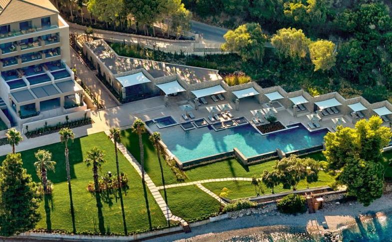 Hotel se nachází v oblasti Agios Ioannis, ve východní a klidné části ostrova. Vzdálenost od letiště a starého města je přibližně 20 km. V okolí se nachází supermarket a různá stravovací zařízení.