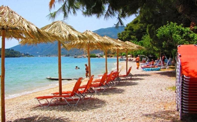 Příjemný rodinný hotel přímo u krásné písečno-oblázkové pláže, s tavernou a posezením na terase se vzrostlými stromy, nedaleko centra letoviska Nidri s přístavem, mnoha obchůdky a restauracemi, zároveň stranou od hlavní turistické třídy.