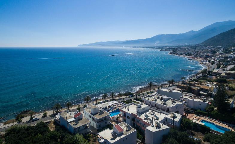 Hotelový komplex cca 30 kilometrů východně od Heraklionu. V okolí obchody, restaurace, bary, centrum Chersonissos cca 3 km (pravidelné autobusové spojení). Letiště Heraklion je vzdálené 30 km od hotelu a letiště Chania je vzdálené 170 km