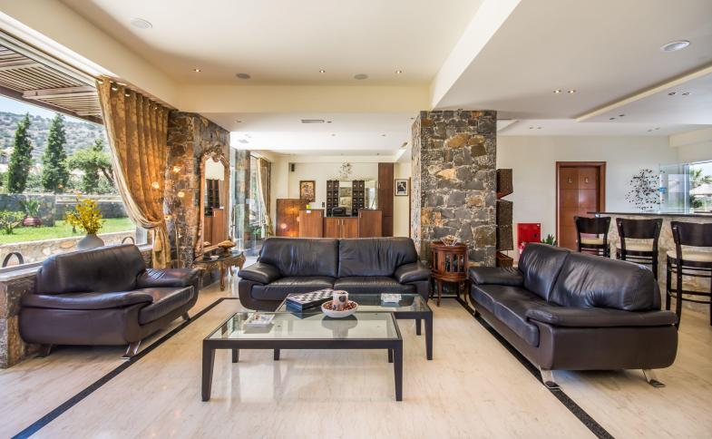 Vstupní hala s recepcí, výtah, lobby bar s terasou, místnost s TV a pianem. Venku bazén, bar u bazénu a terasa s lehátky a slunečníky zdarma.