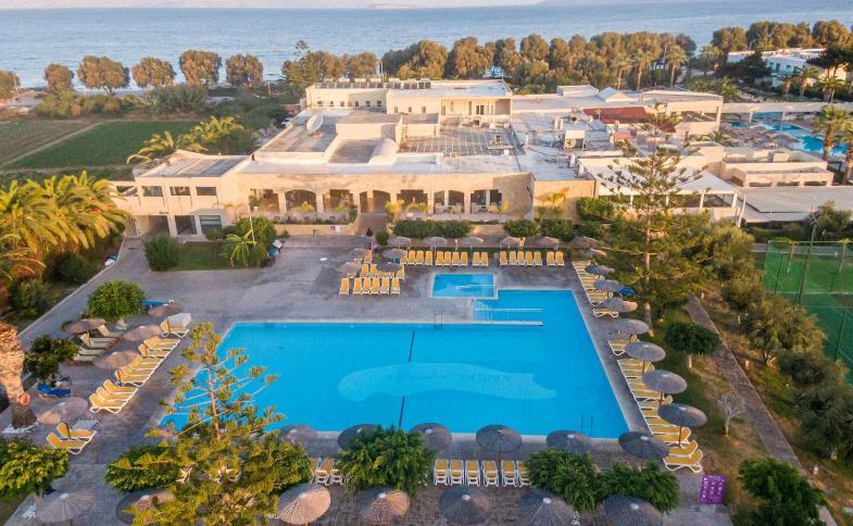 jednom z řeckých ostrovů - Kos. Má výhled na písečnou pláž Marmari
