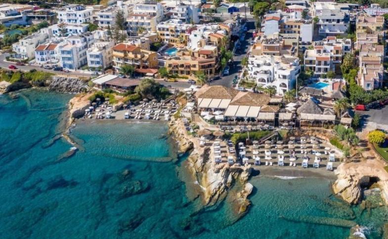 | hotel leží v bezprostřední blízkosti moře (20 m), od kterého je oddělen pouze místní slepou komunikací. Přímo před hotelem jsou 3 menší zálivy, kde byly v zimě 2016 vybudované nové písečné pláže. Nedaleko hotelu, přímo ve středisku Hersonissos, je několik dalších malých písečných plážiček (cca 250 m). Rovněž přímo před hotelem ,nedaleko beach baru, najdete velice oblíbená skaliska, ze kterých je příjemný přístup přímo do vody. Od letiště v Heraklionu je hotel vzdálený necelých 27 km, oblíbené středisko Malia je vzdálené 7 km, golfové hřiště 8 km, Water Park Star Beach 400 m a centrum letoviska je v docházkové vzdálenosti. Autobusová zastávka je vzdálena 50 m a umožní Vám snadno procestovat celý ostrov veřejnou dopravou. |