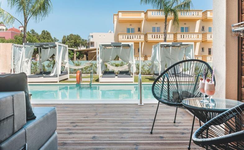 V pokojích je klimatizace a koupelna. Ke standardu většiny pokojů patří balkón, na kterém mohou hosté odpočívat. Z většiny pokojů je aspoň částečný výhled na moře. Je tady sejf. K dispozici je také mini lednička a varná konvice/kávovar. Na pokoji je telefon a televize. Pro hosty je na pokoji připravena domácí obuv. V koupelnách je sprchový kout. K dispozici je také vysoušeč vlasů, kosmetické zrcátko a župan.