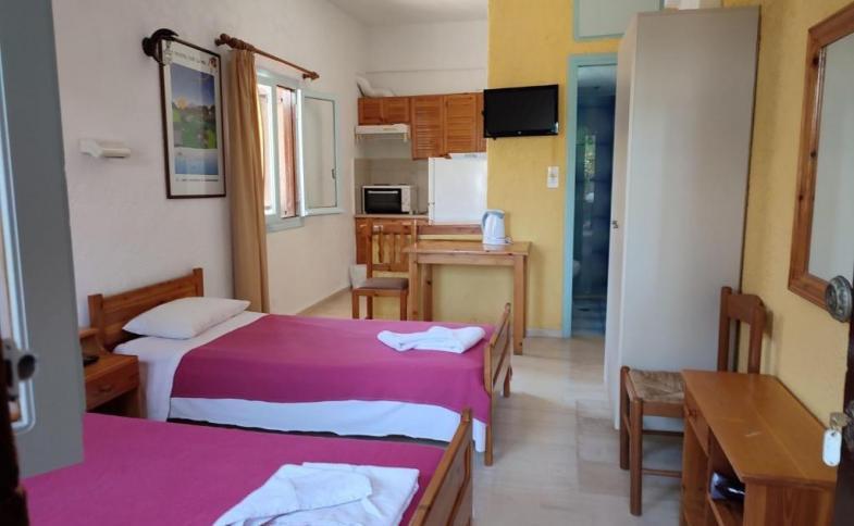 | Typicky řecká studia obklopená pěknou zahradou se nachází pouhých 70 m od písečné pláže schované v krytém zálivu s lehátky a slunečníky (za poplatek), můžete zde využít i nabídku vodních sportů. Další vyhlášené pláže jako např. Psaromoura, Lygaria nebo Mononaftis jsou vzdálené cca 1 km. Hostům je zde k dispozici recepce s Wi-Fi připojením zdarma v celém areálu, v zahradě je vybavení na BBQ. K příjemným chvílím může také patřit posezení v některé z blízkých taveren nad sklenkou dobrého vína nebo ochutnávkou místních specialit. Tato nesmírně malebná přímořská osada, která si stále uchovává původní atmosféru, patří k nejkrásnějším rybářským vesnicím na Krétě. Dovolená zde nadchne jak milovníky lenošení na plážích u průzračně modrého moře, tak i ty, kteří chtějí poznávat bohatou krétskou historii spojenou s tradiční řeckou pohostinností, za kterou sem jezdí stále více návštěvníků. |