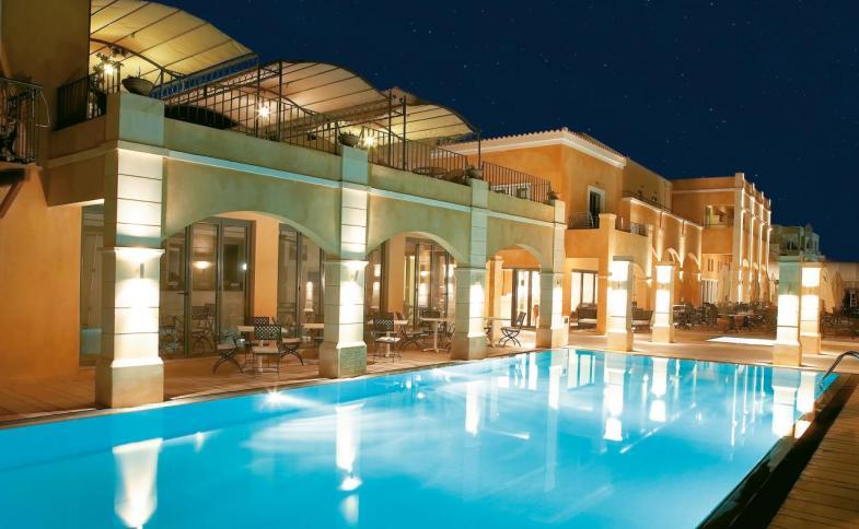 Grecotel. Nachází se přímo u krásné pláže, kousek od historického