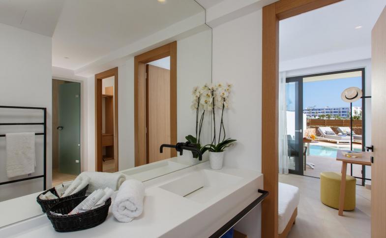 Pokoje mají klimatizaci a koupelnu. Většina pokojů má balkón nebo terasu. Na požádání lze zdarma přistavit přistýlku nebo dětskou postýlku. Také je zde sejf a minibar. Ke standardnímu vybavení patří varná konvice/kávovar. K základnímu vybavení patří připojení k internetu a televize. V koupelnách je sprchový kout. K dispozici mají hosté také vysoušeč vlasů, župan a telefon.