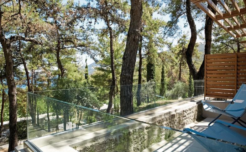 V pokojích je klimatizace, ústřední topení, ventilátor a koupelna. Většina pokojů má balkón s krásným výhledem. Většina pokojů má výhled na moře. Pokoje mají manželskou postel typu king size a rozkládací pohovku. Je možné rezervovat oddělené ložnice. Je možné požádat o přistýlku. Také je zde sejf a minibar. K dispozici je také lednička, mini lednička a varná konvice/kávovar. Hosté mají k dispozici pračku. K základnímu vybavení patří připojení k internetu, telefon, televize, rádio a WiFi. V koupelnách je sprchový kout. K dispozici mají hosté také vysoušeč vlasů, župan a telefon. Rodiny s dětmi si mohou rezervovat speciální rodinné pokoje.