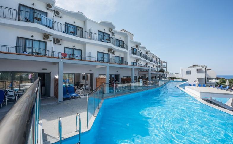 Hotelový komplex hlavní budovy a patrových vedlejších budov je situován na kopci s panoramatickým výhledem na rybářskou vesničku a záliv, cca 2 km od centra střediska a cca 15 km od letiště Heraklion; autobusová zastávka před hotelem. Vzhledem k poloze hotel nedoporučujeme pro osoby se sníženou pohyblivostí.Adresa hotelu: město: Agia Pelagia ZIP: 711 10, ulice: Agia Pelagia