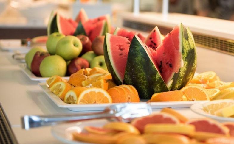 All inclusive zahrnuje snídaně (07:30-10:00), oběd (12:30-14:30) a večeře (18:30-21:30 formou bufetu, odpolední kávu a sušenky, nealkoholické a vybrané alkoholické nápoje místní výroby (10:30-23:00, drinky s vodkou od 18:00 do 21:30) v místech a časech určených hotelem. Po předchozí rezervaci je možná ještě brzká snídaně.