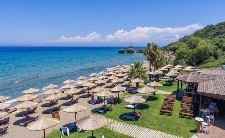 Veřejná písečnooblázková pláž s pozvolným vstupem do vody se nachází přímo u hotelu; lehátka a slunečníky na pláži za poplatek (cca 15-20 EUR/set) . Doporučujeme boty do vody, ale není nutné.