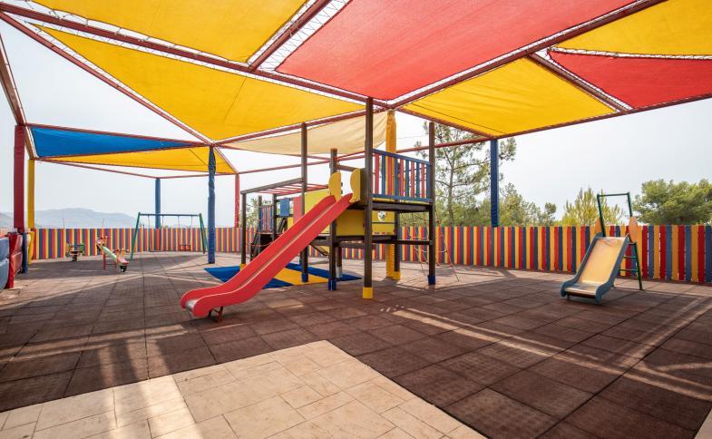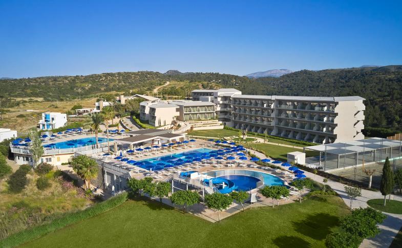 Hotelový komplex se nachází na kopci ve středisku Kiotari.