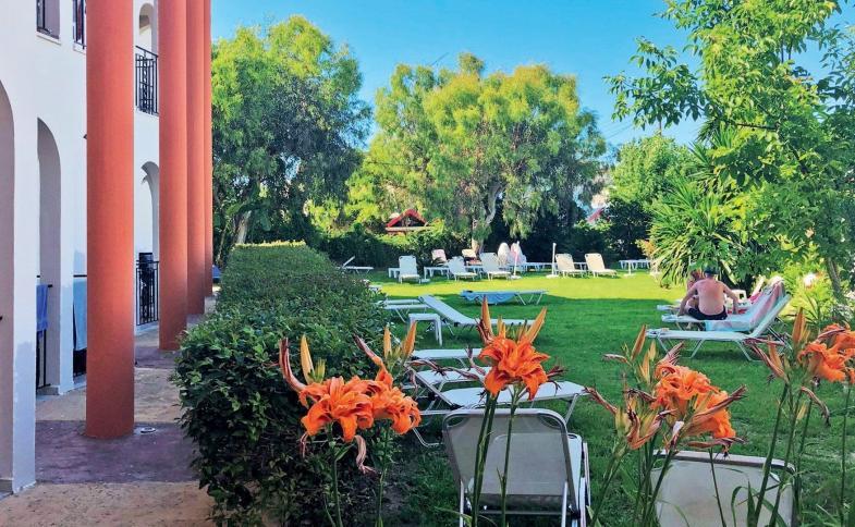 Menší hotel s přátelskou atmosférou se nachází na severním pobřeží ostrova v krásné zahradě poblíž centra Roda.