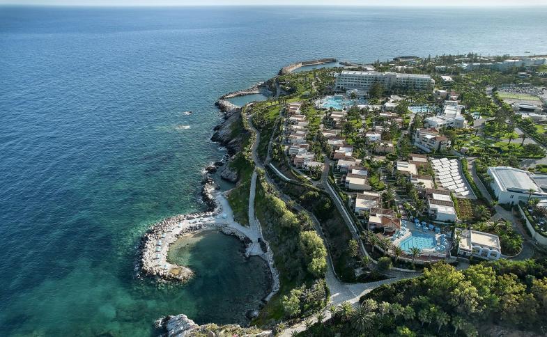 454 pokojů rozdělených mezi hlavní budovu a bungalovy v zahradě. Vstupní hala s recepcí, hlavní restaurace, italská restaurace, snack bar, taverna, lobby bar, vnitřní bazén, konferenční místnost, minimarket. V zahradě 5 bazénů (z toho 3 s mořskou vodou), bazén pro děti, bar u bazénu, terasa na slunění, lehátka a slunečníky zdarma, osušky oproti kauci.