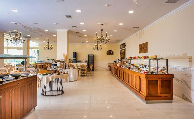 Služby all inclusive zahrnují plnou penzi formou bufetu (snídaně od 7:00 do 10:30 h, obědy od 12:30 do 14:30 h, večeře od 18:30 do 21:30 h), lehké občerstvení během dne u bazénu (od 10:00 do 18:00 h), neomezenou konzumaci vybraných alkoholických a nealkoholických nápojů místní výroby v době od 10:00 do 24:00 h. Uvedené časy jsou orientační. Klienti hotelu mají 1x za pobyt vstup na večeři v a la carte restauraci zdarma, místa nutno předem objednat. |