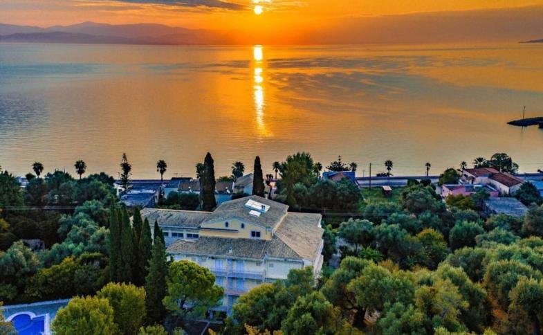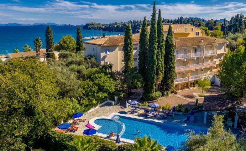 | Oblíbený menší plážový hotel vyznačující se rodinným charakterem najdete v klidné části na okraji letoviska Ipsos a to přímo u nádherné oblázkově-písečné pláže (přístup přes pobřežní místní komunikaci). Samotné centrum letoviska je vzdáleno 400 m a nabídne Vám veškerý turistický servis. Na jeho promenádě bude moci posedět v kavárnách a tradičních tavernách, nechybí nákupní možnosti, půjčovny vozidel aj. Z centra letoviska se lze snadno dopravovat do dalších zajímavých míst ostrova a to díky místní, vcelku dobře frekventované, autobusové dopravě. Mezinárodní letiště je vzdáleno 15 km (doba transferu cca 25 min). |