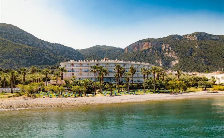 | plážový hotel s krásnou subtropickou zahradou se vzrostlými palmami přímo na vlastní oblázkové pláži v klidné jižní části letoviska. V blízkosti hotelu se nachází několik obchůdků, restaurací a taveren. Do centra letoviska s řadou obchodů, restaurací, barů, taveren a stánků s rychlým občerstvením cca 400 m. |