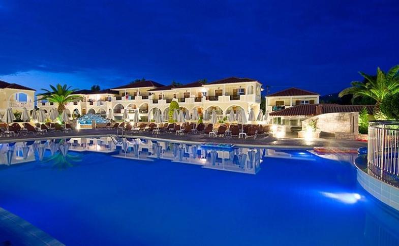 | Moderní a vzdušný hotel, který nedávno prošel renovací, se nachází v krásné a pečlivě udržované zahradě plné palem a různých stromů a keřů, jen 150 m od široké písečné pláže, která je známá tím, že zde kladou svá vejce chráněné želvy Caretta caretta. Hotel nabízí vstupní halu s recepcí (Wi‑Fi ve veřejných prostorách zdarma, internetový kout u recepce za poplatek), směnárnu, TV místnost, restauraci, střešní restauraci, bar, snack bar u bazénu s nabídkou nápojů i jídel, dále 2 vířivky pro dospělé, 3 venkovní bazény, (z toho jeden s oddělenou dětskou částí, jeden pouze pro dospělé a jeden se skluzavkami a akvaparkem pro děti) a hřiště. Lehátka, slunečníky a osušky u bazénu jsou zdarma, na pláži za poplatek stejně jako vodní sporty. Můžete si zahrát fotbal, basketbal, kulečník, stolní hokej a stolní tenis. Hotel také pořádá večerní grilování, programy včetně živé hudby, kvízů a binga. Centrum letoviska s obchody, tavernami a bary je vzdálené jen pár minut chůze. Pokud budete chtít navštívit rušnější místa, můžete využít místní autobusové dopravy a vyrazit do nedalekého letoviska Laganas nebo do hlavního města Zakynthos. Pro velkou oblibu tohoto hotelu doporučujeme včasný nákup hlavně rodinám s dětmi. |
