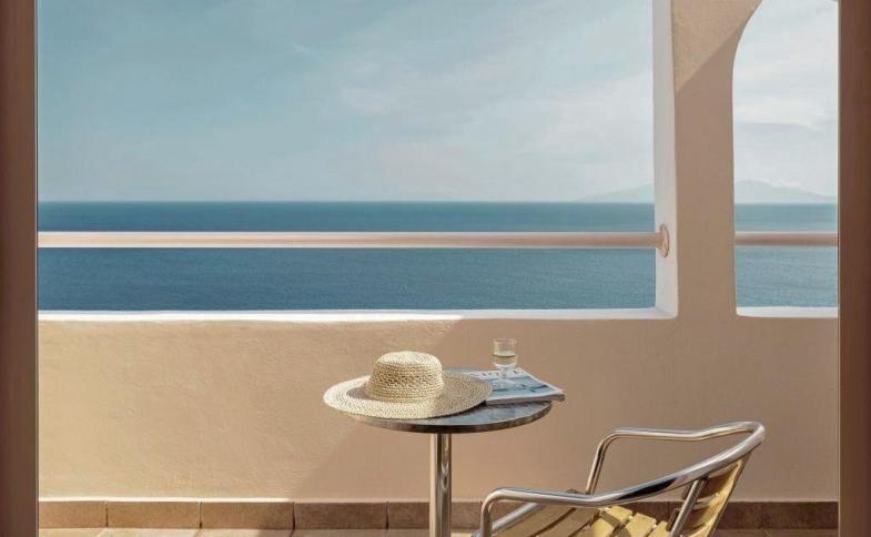 Dvoulůžkový pokoj: koupelna/WC, individuální klimatizace, TV/sat., telefon, trezor, minibar (každý druhý den doplňovány nealkoholické nápoje, voda a pivo) minilednička, set na přípravu kávy a čaje, balkon nebo terasa.- Dvoulůžkový pokoj, Výhled na moře: výhled na moře.