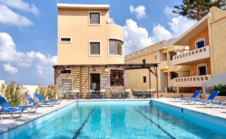 | Příjemný komplex několika vilek v pěkné zahradě v klidném prostředí letoviska Kokkini Hani leží u písečné pláže Niros s pozvolným vstupem do moře (přístupné pouze přes cestu). Hlavní budova nabízí vstupní halu s recepcí, Wi-Fi připojení zdarma po celém areálu hotelu, TV kout, restauraci, snack bar a bazén s terasou na slunění, kde jsou lehátka a slunečníky zdarma (na pláži za poplatek). V nedalekém centru letoviska najdete několik restaurací, taveren, barů, marketů a obchodů se suvenýry, v docházkové chůzi můžete navštívit známé Cretaaqurium s 200 různými živočišnými druhy Středozemního moře nebo se můžete autobusem vydat do rušnějších měst, jako je např. Hersonissos či 12 km vzdálený Heraklion. 3 km od hotelu se také nachází velký vodní park Anopolis. Doporučujeme klientům, kteří ocení bezprostřední blízkost pláže a chtějí si užít klidnou dovolenou. |
