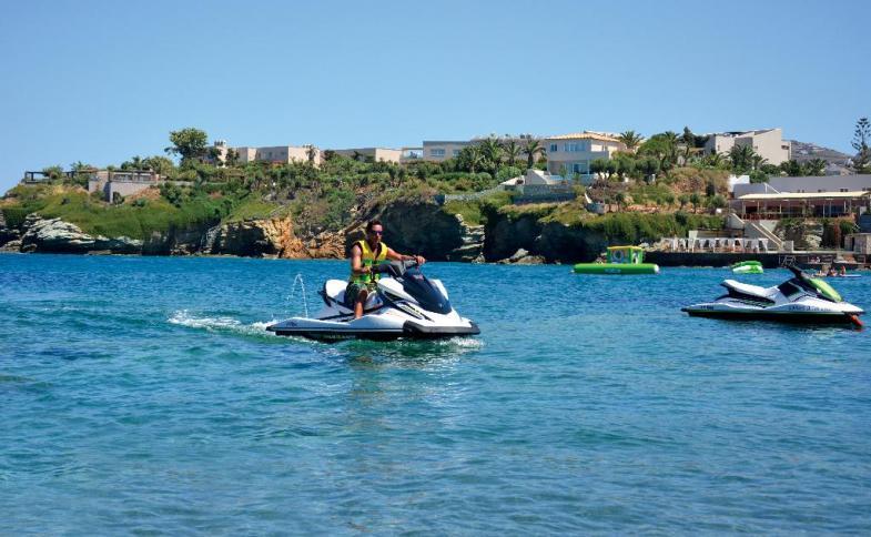 Ausstattung: Das hochwertige Resort besteht aus mehreren Gebäuden mit insgesamt 410 Zimmern, zum Teil im Bungalow Stil angelegt und verfügt über eine Lobby mit Rezeption, 4 Restaurants, 6 Bars, Wi-Fi (inklusive), Minimarkt (mit traditionell griechischen Produkten) und einen hochwertigen und umfangreichen Wellnessbereich. In der weitläufigen, wunderschön bepflanzten Gartenanlage befinden sich 4 Swimmingpools mit Liegen, Sonnenschirme und eine Poolbar, 3 Wasserrutschen innerhalb der Anlage und schwimmende Wasserspiele in der Badebucht. Am Strand und am Pool sind Strandtücher, Sonnenschirme und Sonnenliegen inklusive. Der Minoan Amusement Club bietet ein abwechslungsreiches Angebot für Kinder von 4-12 Jahren.