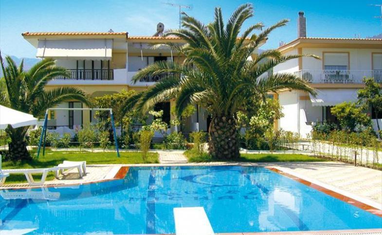 | Rezidence MICHALIS ***Poloha:Rezidence se nachází v klidné části letoviska, do centra cca 500 m - asi 8 min. procházkovou chůzí. Rezidence Michalis patří k nejžádanějším ubytovacím kapacitám v naší nabídce.Ubytování:studia pro 2-3 osoby a 4-lůžková studia (manželské lůžko a patrová postel) s kuchyňským koutem (vařič, lednice, nádobí podle počtu ubytovaných), vlastním soc. zařízením (SWC), balkónem se zahradním nábytkem, SAT-TV a klimatizací (za příplatek 5,- Euro/den).Vybavení:Celý komplex je oplocen, což zabezpečuje soukromí klientů, v zahradě rezidence plné květin, palem a subtropické vegetace jsou umístěny houpačky a prolézačky pro děti a hřiště se sítí pro míčové hry, bazén s lehátky, pergola s posezením a krbem, Wi-Fi v objektu bezplatně.Další služby:Jednolůžkový pokoj + 500,- Kč/noc |