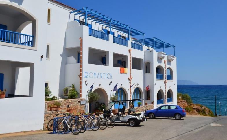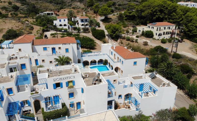 | Penzion Romantica Main Building Apartments svým provedením zcela kopíruje místní tradiční stavitelský styl, převládá mu bílá barva v kombinaci s modrou barvou oken a dveří. Objekt tvoří několik ubytovacích bloků spojených v jednu členitou budovu, které jsou propojené chodníky a malými schodišti. Vládne zde poklidná atmosféra a to i díky faktu, že v přímém okolí je jen několik dalších budov odsazených v dostačující vzdálenosti od penzionu. Jedná se o sesterské zařízení se sousedním Romantica Hotel. Jedinečná poloha na vyvýšenině vytváří nádherné výhledy na moře a celé okolí a to jak ze společných částí penzionu, tak i z některých pokojů. K dispozici Vám bude recepce, snídaňová místnost, bazén se sluneční terasou s lehátky a slunečníky (zdarma) a také dostatečně vybavená posilovna. |