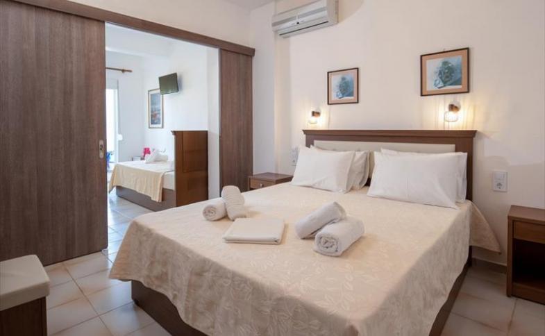 | Většina pokojů jsou dvoulůžkové pokoje s možností přistýlky, pokoje jsou vybaveny vlastním soc. zařízením (SWC), ledničkou, SAT-TV, klimatizací (zdarma), Wi-Fi a balkónem. Větší třílůžkové pokoje a rodinné pokoje pro 2-4 osoby na vyžádání (cenu prosím vyžádejte v CK). |