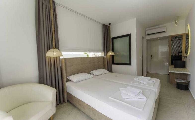 V pokojích je klimatizace a koupelna. Většina pokojů má balkón s krásným výhledem. Mnoho pokojů má výhled na moře, který vytváří příjemnou atmosféru. Pokoje mají dvoulůžkovou postel nebo rozkládací pohovku. Je možné požádat o přistýlku. Je tady sejf. Navíc je k dispozici kuchyňský kout s ledničkou, mini ledničkou a varnou konvicí/kávovarem. Na pokoji je připojení k internetu, telefon, televize a WiFi (zdarma). V koupelnách je sprchový kout, vana a vířivá vana. Také je tu vysoušeč vlasů. V objektu jsou pokoje pro rodiny a nekuřácké pokoje.