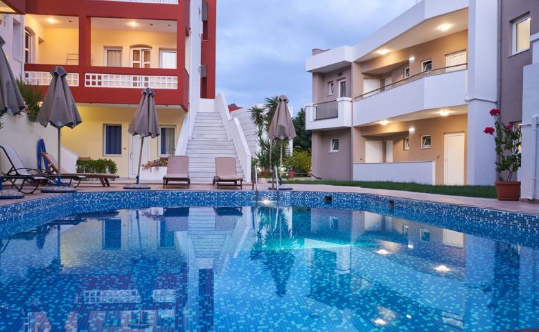 Apartmánový komplex pochází z roku 1990. Komplex hostům nabízí celkem 72 pokojů. Jsou rozmístěny v jedné hlavní budově a v 5 vedlejších budovách. V objektu je úschovna zavazadel a hotelový sejf. Přes WiFi (zdarma) se mohou hosté ve společných prostorách připojit k internetu. Na rezervační přepážce vám rádi pomůžeme s výběrem a rezervací výletů Nachází se zde několik stravovacích zařízení, například restaurace a bar. Jsou zde i různé obchody. Je tady také hezká zahrada. Nachází se zde také TV místnost a knihovna. Hosté mohou zaparkovat v garáži nebo na parkovišti (zdarma). Dále je možné využít vícejazyčný personál, autopůjčovnu a transfer-servis.