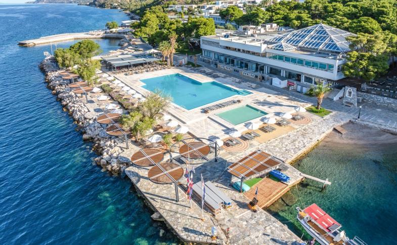 Hotel se nachází přímo u pláže, v oblasti Loutraki v blízkosti Korintského zálivu. Hotel obklopuje krásná udržovaná zahrada o rozloze 5ha. Jedná se o 5* hotelový resort s vlastním wellness centrem. Resort se chlubí svou polohou u nábřeží a nachází se kousek od historických míst Epidaurus, Mykény, Nafplio a oblasti Starověkého Korintu. Letiště Athény cca 100 km, Korintský průplav cca 11 km, Allou! zábavní park cca 85 km.Vzdálenosti