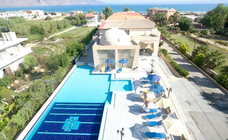 Hotelový komplex s přátelskou atmosférou nacházející se přímo na pláži v klidné oblasti letoviska Kavros, v okolí několik obchodů, taveren a restaurací. Cca 7 km od úžasného jezera Kournas, ideální volba pro odpolední výlet. Cca 20 km od města Rethymno a 40 km od města Chania. Mezinárodní letiště (HER) je vzdáleno 100 km, další letiště (CHQ) je vzdáleno 48 km.