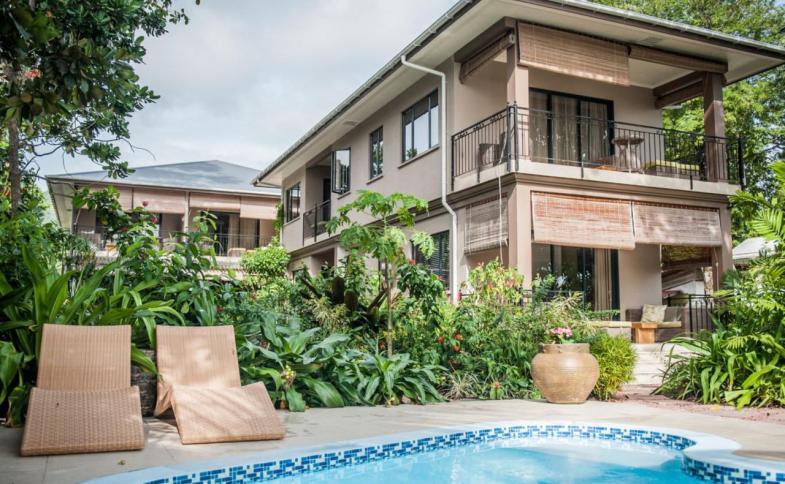 v blízkosti centra hlavní vesnice na La Digue. Je v docházkové