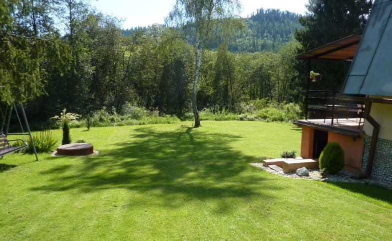 | ohniště s grilem, zahradní nábytek dřevěný+kovový, houpačka zahradní, badminton, krbová kamna (obytná místnost), gril zahradní, posezení ano, slunečník, uzamykatelný prostor pro kola, krb zahradní i v domě (obývačka) |