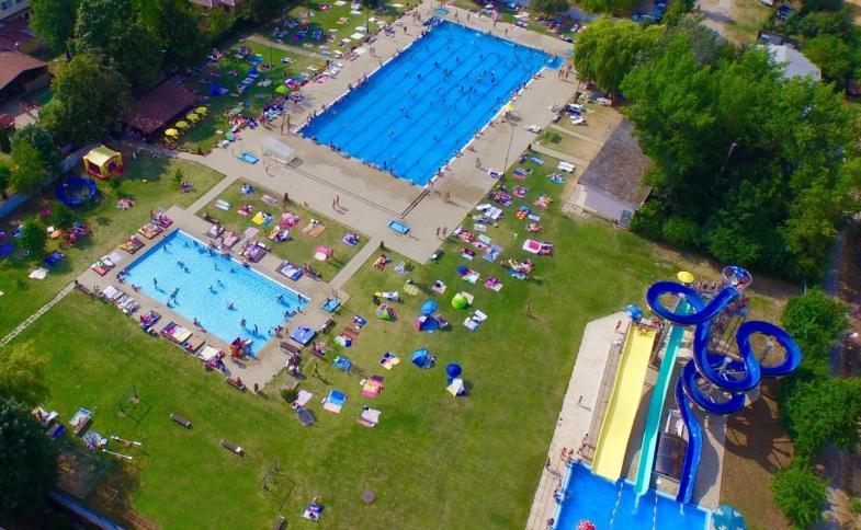 s TV. Letní termální koupaliště se skládá z 5 bazénů s termální