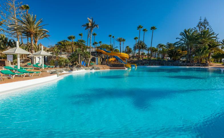 Hotel ideální pro rodiny s dětmiSpeciální vybavení v rodinných pokojích pro dětiV klidné části letoviska San AgustínBazén se skluzavkami pro děti