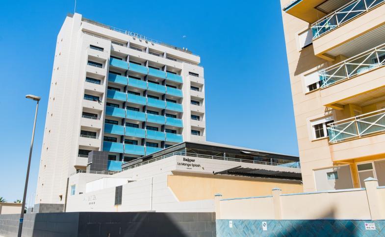 V klidné severní části výběžku střediska La Manga, v blízkosti jachetního přístavu a průlivu mezi Středozemním mořem a slanou lagunou Mar Menor. V okolí hotelu několik restaurací a barů i drobné nákupní možnosti. Zastávka linkového autobusu cca 50 m. Centrum střediska La Manga cca 10 km.- Letiště Alicante cca 140 km