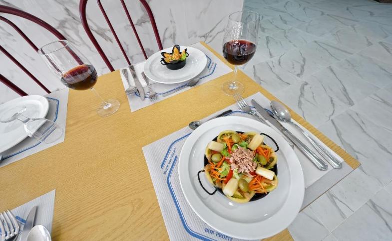 Lze objednat stravování all inclusive. Podávají se snídaně, obědy a večeře. Hotel nabízí také drobné občerstvení. Objekt nabízí nealkoholické nápoje a alkoholické nápoje.