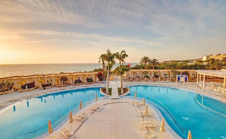 Kromě stravy,která za nás byla hrozná,je to pěkný hotel.Pro nemocné s celiakií je na vyžádání bezlepkové pečivo.Tobogán byl v provozu pouze 1.Omezení v bazénech(nesmí se používat lehátka,menší děti nesmí do velkého bazénu bez dospělého).Pláž hezká,pozvolný vstup.Trvale velmi silný vítr(pobyt v druhé polovině května),na dlouhé koupání to opravdu není(ani v bazénu).