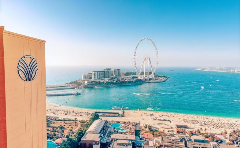 - Dvoulůžkový pokoj, Výhled moře a Ain Dubai: boční výhled na moře a vyhlídkové kolo Ain Dubai.