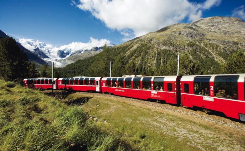 | Davos;46.803379, 9.832238 Schatzalp;46.801183, 9.815121 Vierwaldstättersee Viznau Rigi Goldau Curyšské jezero Filisur Thusis Preda a tunel Albula Svatý Mořic;46.491064, 9.835102 Ospizio Bernina průsmyk Bernina;46.588263, 9.777663 kruhový viadukt Brusio;46.254175, 10.128480 Tirano;46.215755, 10.167349 |