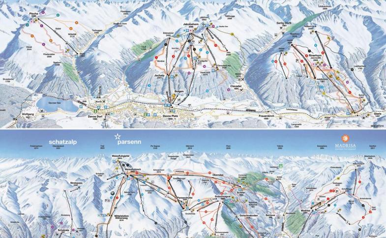 | Davos, centrum - 300 m, skiareál Parsenn - 300 m, skiareál